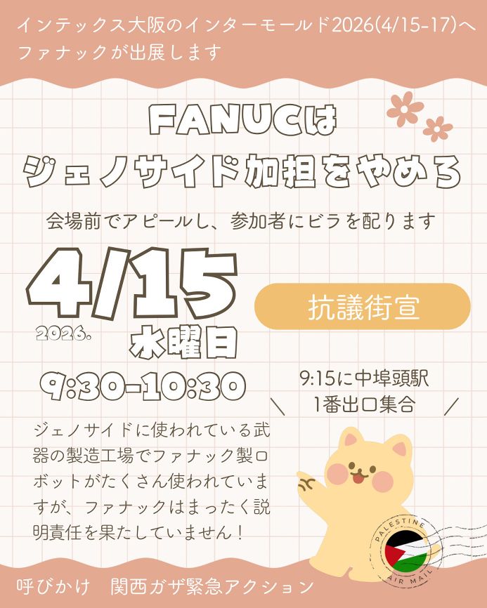 2018年 1月22日(月) 沖縄米軍事故に抗議するビラまき・アピール行動 日時 1月22日(月) 19:00〜20:00 場所 京橋駅 JRと京阪の間 呼びかけ リブ・イン・ピース☆9+25 2月19日(月) 朝鮮半島での戦争に反対するビラまき・アピール行動 日時 2月19日(月) 19:00〜20:00 場所 京橋駅 JRと京阪の間 呼びかけ リブ・イン・ピース☆9+25 3月19日(月) 森友疑惑・公文書改ざん追及ビラまき・アピール行動 日時 3月19日(月) 19:00〜20:00 場所 京橋駅 JRと京阪の間 呼びかけ リブ・イン・ピース☆9+25 3月21日(水・休) リブインピース@カフェ シリーズ憲法と自衛隊 その4 北朝鮮に戦争を仕掛けるな! 攻撃できる自衛隊と9条改憲に反対する 日時 3月21日(水・休) 午後1:30〜4:30 場所 阿倍野市民学習センター(あべのベルタ3F 地下鉄谷町線「阿倍野」駅すぐ JR・地下鉄天王寺駅8分) <地図> 4月16日(月) 森友疑惑・公文書改ざん追及・安倍内閣総辞職を求めるビラまき・アピール行動 日時 4月16日(月) 19:00〜20:00 場所 京橋駅 JRと京阪の間 呼びかけ リブ・イン・ピース☆9+25 5月21日(月) 麻生財務相辞任・安倍内閣総辞職を求めるビラまき・アピール行動 日時 5月21日(月) 19:00〜20:00 場所 京橋駅 JRと京阪の間 呼びかけ リブ・イン・ピース☆9+25 6月11日(月) 麻生財務相辞任・安倍内閣総辞職を求めるビラまき・アピール行動 日時 6月11日(月) 19:00〜20:00 場所 京橋駅 JRと京阪の間 呼びかけ リブ・イン・ピース☆9+25 7月9日(月) 麻生財務相辞任・安倍内閣総辞職を求めるビラまき・アピール行動 日時 7月9日(月) 19:00〜20:00 場所 京橋駅 JRと京阪の間 呼びかけ リブ・イン・ピース☆9+25 7月27日(金) 朝鮮戦争休戦65周年−東アジアに平和を!7.27キャンドル行動 〜休戦協定を平和協定に! 日朝の対話を! 日時 7月27日(金) 18時30分から 場所 大阪市うつぼ公園(地下鉄四つ橋線「本町」駅28番出口から北へ約5分) 主催 7.27キャンドル行動実行委員会 8月5日(日) リブインピース@カフェ 変わる朝鮮半島〜私たちにできること 日時 8月5日(日) 午後1時半〜4時半 場所 国労会館第2小会議室(JR環状線天満駅下車すぐ) 8月20日(月) 辺野古新基地建設に反対するビラまき・アピール行動 日時 8月20日(月) 19:00〜20:00 場所 京橋駅 JRと京阪の間 呼びかけ リブ・イン・ピース☆9+25 9月9日(日) リブインピース@カフェ 「『本土』からも声を上げよう 辺野古基地建設阻止!」 日時 9月9日(日) 午後1時半〜4時半 場所 西成区民センター(地下鉄「岸里」すぐ・地下鉄・南海「天下茶屋」5分) <地図> 9月10日(月) 辺野古新基地建設に反対するビラまき・アピール行動 日時 9月10日(月) 19:00〜20:00 場所 京橋駅 JRと京阪の間 呼びかけ リブ・イン・ピース☆9+25 9月23日(日) 映画『標的の島 風かたか』上映会 日時 9月23日(日) 午後1時半〜4時半 場所 阿倍野市民学習センター講堂(JR天王寺駅より10分 地下鉄阿倍野駅下車すぐ) <地図> 10月15日(月) 辺野古新基地建設に反対するビラまき・アピール行動 日時 10月15日(月) 19:00〜20:00 場所 京橋駅 JRと京阪の間 呼びかけ リブ・イン・ピース☆9+25 11月3日(土) 輝け憲法!9条改憲STOP!東アジアに平和を!辺野古に基地はいらない! 全国3000万署名を成功させよう!輝け憲法!共に生きる社会を! 11・3大阪総がかり集会 日時 11月3日(土) 13:30-15:30 場所 扇町公園 主催 大阪総がかり集会実行委員会 11月19日(月) 辺野古新基地建設に反対するビラまき・アピール行動 日時 11月19日(月) 19:00〜20:00 場所 京橋駅 JRと京阪の間 呼びかけ リブ・イン・ピース☆9+25 11月24日(土) 辺野古新基地建設を止めよう! ゆたかな海を守ろう! 沖縄現地の声を聞く11・24集会 日時 11月24日(土) 13:30〜16:30 場所 国労大阪会館 大会議室(3階) (JR環状線天満下車すぐ) 参加費 800円 ゲスト・お話 堀田ちえこさん(名護市在住) 「大浦湾の生きものたち」の写真展示も行います 12月17日(月) 辺野古新基地建設に反対するビラまき・シールアンケート 日時 12月17日(月) 19:00〜20:00 場所 京橋駅 JRと京阪の間 呼びかけ リブ・イン・ピース☆9+25 2019年 1月21日(月) 辺野古新基地建設に反対するビラまき・シールアンケート 日時 1月21日(月) 19:00〜20:00 場所 京橋駅 JRと京阪の間 呼びかけ リブ・イン・ピース☆9+25 2月3日(日) リブインピース@カフェ 「安倍軍拡の更なる加速にストップを 新防衛大綱は何を示すのか」 日時 2月3日(日) 13:30〜16:30 場所 阿倍野市民学習センター(JR天王寺駅より10分 地下鉄阿倍野駅下車すぐ) <地図> 2月11日(月) 「戦争する国」も「神の国」もゴメンだ!2・11集会 日時 2月11日(月) 開会13:00(開場12:30) ※デモ 16:30出発予定(梅田まで) 場所 大淀コミュニティセンター(地下鉄谷町線・堺筋線、阪急「天神橋筋六丁目」11番出口より徒歩12分) <地図> 資料代 700円(学生・障がいのある方等無料) 主催 「日の丸・君が代」強制反対・不起立処分を撤回させる大阪ネットワーク ミニライブ 長野たかし&森川あやこ 講演 鵜飼哲さん「21世紀の天皇制とその批判の論理」 ZAZAよりのアピール等 2月18日(月) 辺野古米軍基地建設を問うシール投票 日時 2月18日(月) 19:00〜20:00 場所 京橋駅 JRと京阪の間 呼び