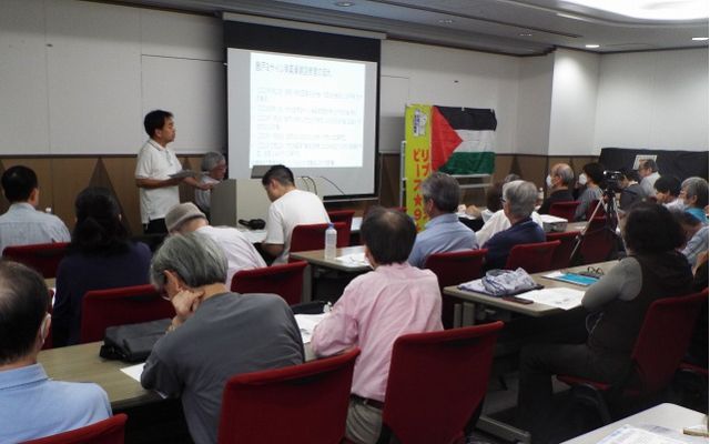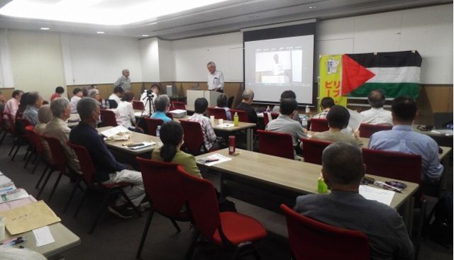 10月12日に「長射程ミサイル配備と大型弾薬庫建設に反対する」と題して、リブ・イン・ピースの第2回カフェが開かれました。50人近くが参加して会場は満席で、活発な発言が次々続き盛会となりました。カフェには大分敷戸弾薬庫問題を考える会事務局次長の葛城知明さんを講師に招き、大分の弾薬庫増設反対運動の現場からの詳しい報告を聞きました。大分では弾薬庫9棟増設の計画ですべて予算化されており、最初の1棟は12月にも完成する予定です。地元では完成に合わせてミサイル搬入反対の集会を準備しています。大分県では敷戸弾薬庫(大分市)以外にも日出生台や十文字原演習場、湯布院駐屯地、玖珠駐屯地、別府駐屯地など自衛隊の基地が多数あり、レゾリュートドラゴン25など日米共同演習などで県内の演習場や自衛隊施設が全面的に使われている現状が報告されました。反対運動は増設計画が明らかになった23年から、長距離ミサイルが置かれれば攻撃対象になるなど住民の不安の高まりから始めりました。敷戸弾薬庫は大分市の住宅密集地のすぐそばにあり、1キロ以内に1万6千人、2キロ以内に4万人が住む、文字通り市民の目と鼻の先にあります。反対運動の中で保安距離が守られているのか、軍民分離に反するのではないか、南西諸島の要塞化や避難計画、重要土地規制法等、さまざまな問題点を取り上げながら、日常的にスタンディングや講演会を行い運動を進めていることが紹介されました。別の予定で来阪していてカフェに参加してくれた、考える会で沖・西ネットの共同代表でもある 池田年宏さんは、それぞれの運動のつながりが必要で、お互いのところで起こっていることを知ること、つながっていくことが戦争を食い止める第1歩だと話し、運動の中で歌っている<ミサイルはいりません>という歌を披露してくれました。12式地対艦誘導弾延伸型の配備、司令部の地下化が進められている熊本市からは、平和を求め軍拡を許さない女たちの会・熊本の海北由希子さんがZOOMで参加し、現状について話されました。琉球弧の島々では自衛隊と米軍が軍事要塞化と機動展開化を進めています。熊本市には健軍駐屯地があり、西部方面隊(九州・沖縄)の総監部(司令部)がおかれ、自衛隊施設の「強靭化」の為に司令部の地下化が進められています。さらに第5地対艦ミサイル連隊には今年度から射程1000キロに及ぶ12式地対艦誘導弾延伸型が初めて配備されます。熊本県には高遊原、北熊本駐屯地や大矢野原演習場等の基地があり、共同使用で米軍も使用すると話されました。海北さんは戦争は最大の人権侵害だ、戦争を望む自衛隊員などいないと言い、自衛隊員募集のために子どもがターゲットにされているが、子どもを守れるのは大人だけだと強調しました。 リブ・イン・ピースからは補足報告として2点強調しました。一つ目は、12式地対艦誘導弾延伸型、島嶼防衛用滑空弾等長射程ミサイルの配備が進むが、実際には多数の種類の長射程ミサイル開発が同時進行で進められ、さらに実戦配備が次々と前倒しされていること、そのために全国に大型ミサイル用の弾薬庫建設が強行されているのだということ。二つ目は、来年度概算要求が過去最高の8兆8千億円で発表されたが、米軍関係費などは「事項要求」とされ計上していない。また補正予算で数千億が毎年積み増しされる。すでに計画の43・5兆円を超えるテンポで軍事費が膨張している。トランプの要求通り5%(軍事費 だけで3・5%)になれば現状の10兆円ではなく、毎年30兆円を超え、人民関連予算に与える影響は破滅的だ、絶対阻止しようと報告した。19日に近づいている京都府・祝園での全国集会について、大型弾薬庫が14棟(日本で最多数の増設)建設予定で、ぜひ阻止するために集まってくださいという祝園ネットの呉羽真弓さんからのメッセージを読み上げ、みんなで行きましょうと呼びかけました。 大阪狛犬会の方から、中国の大阪総領事は侵略戦争の事実を知り反省し、2度と戦争しないことを確認すべきだが、最近の動向には危機感を感じると話しました。再び戦争をしようという流れを押しとどめよう。11月23日に「中国は脅威か」をテーマに学習会をする予定です。南京60カ年・大阪の方から、歴史を忘れては加害を繰返す、歴史に向き合い戦争を再び起こさない決意をしよう、私たちの再び侵略戦争をしないという決意を伝えに南京を訪問し、市民と交流している。12月には証言集会をするそうです。日朝友好運動をされている方は日米が中国だけでなく朝鮮やロシアに対しても戦争を準備しており、日本を闘わせようとしている、これと闘おう。ガザのスタンディングを続けているリブ・イン・ピースのメンバーは、第1段階の停戦から戦争終結とパレスチナの民族自決権実現に向かうために、今こそ世界から声をあげようと呼びかけた。 大分、熊本等九州で進む弾薬庫建設、攻撃兵器配備の実情を知るとともに、さまざまな立場から日本の対中国戦争準